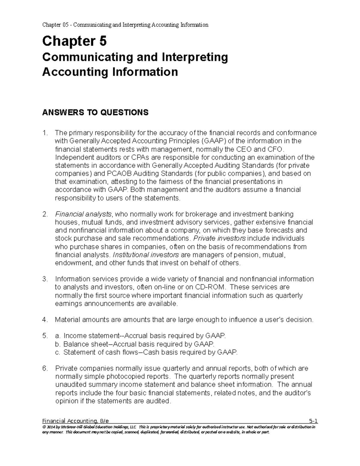 Chapter 5 Solutions Excluding Homework Chapter 5 Communicating And Interpreting Accounting Studocu