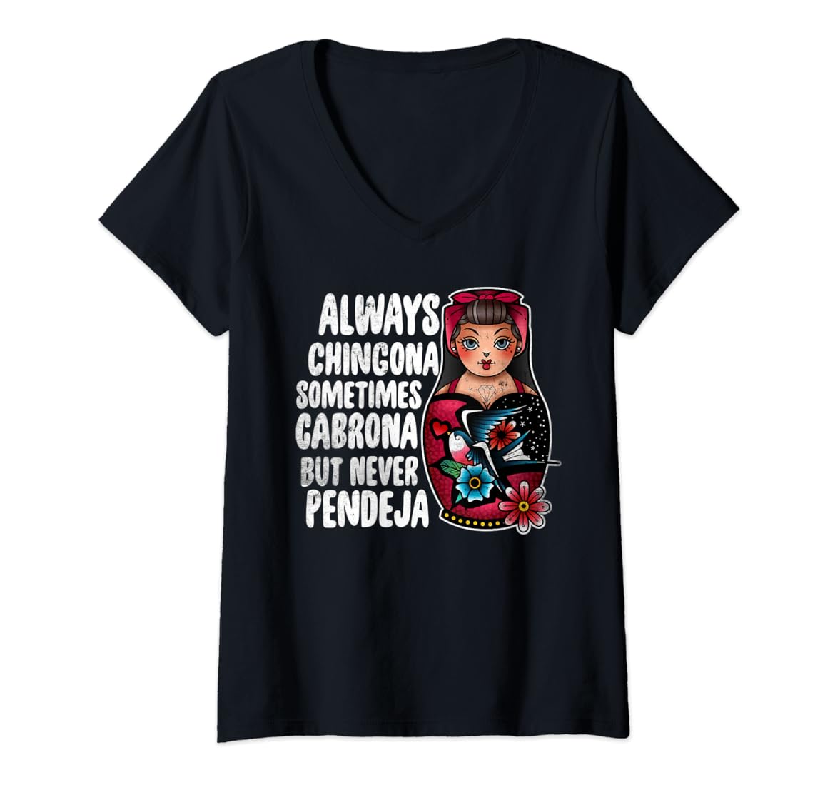 Amazon Com Womens Tattoo Always Chingona Sometimes Cabrona But Never Pendeja V Neck T Shirt Clothing Shoes Jewelry